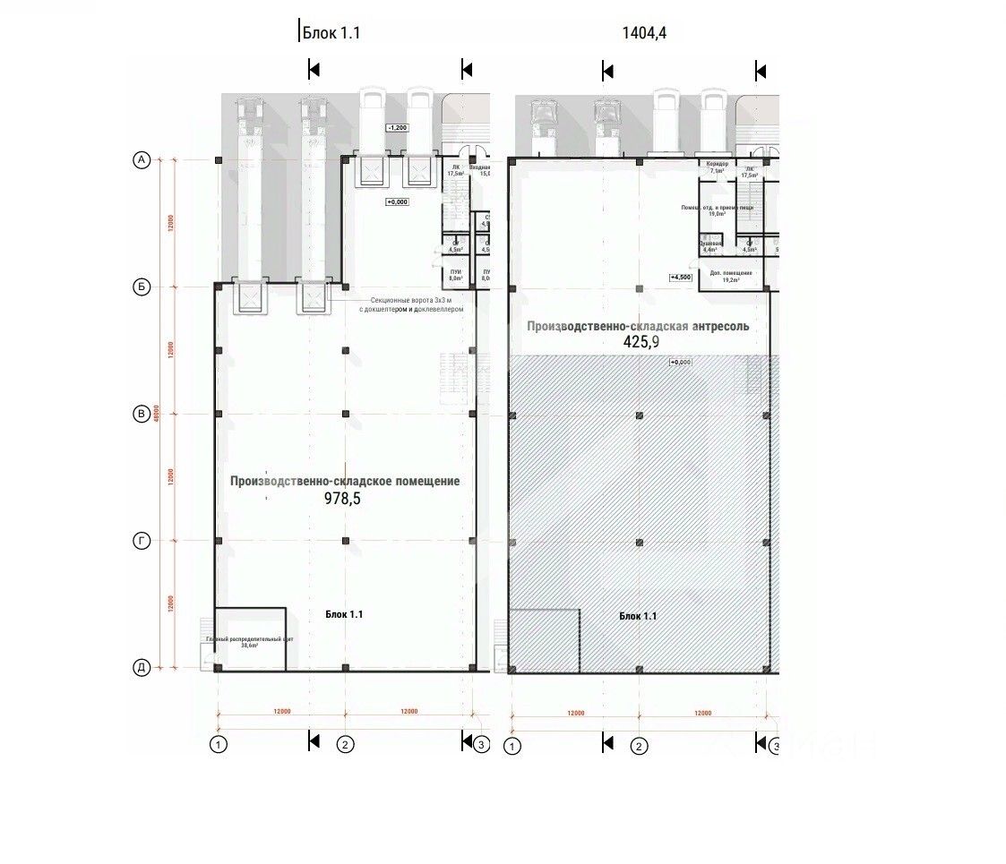 974713. Предлагается современный производственно-складской комплекс общей площадью 1 404.4 кв.м. на территории индустриального парка "Завод", Люберцы. Преимущества: Центр крупной промышленной зоны. 6 минут пешком до станции МЦД-3 "Панки", 10 минут до станции "Люберцы". Развитая транспортная логистика: 8 км от МКАД (20 минут на авто) и 2 км от трассы М5 "Урал". Инфраструктура: магазины, аптеки, кафе — всё в шаговой доступности. Собственная котельная, магистральный газ, центральные коммуникации. Для сотрудников: рядом жилой массив и транспортные узлы. Управляющая компания. Огороженная территория. Парковка. Технические характеристики: Площадь блока: 1 404.4 кв.м. Площадь первого этажа: 978.5 кв.м., площадь антресоли: 425.9 кв.м. Есть возможность адаптации под нужны заказчика. 4 доковых узла: 2 — для фур, 2 — для малотоннажных и легковых авто. Высота потолков: 10 м + антресоль 4,5 м. Нагрузка на пол: 6 т/кв.м, в зоне мезонина: 1,5 т/кв.м. Выделенная мощность: 25 квт в каждом блоке. Готовность - 3 кв. 2026 г. Так как корректный адрес отсутствует на Яндекс.Картах, введен ориентировочный.