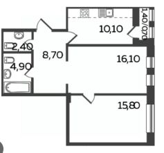 Кухня гостиная площадь 12 кв. метра. Окна выходят на улицу. Две изолированные комнаты 16.10, 15.80 кв. метров. Раздельный сан узел. Есть лоджия, выход на лоджию из кухни.