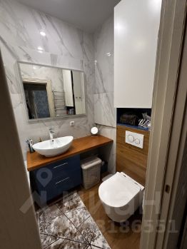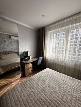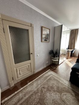 Санузел совмещенный в плитке (3,4 кв м), установлен водонагреватель с выводом на кухню и ванную. На кухне (8,5 кв м) варочная панель, встроенный духовой шкаф и микроволновая печь, вытяжка, встроенная стиральная машина. Балкон (3,5 кв м) с выходом из кухни, утеплен (при -35 и открытой двери с балкона холода в квартире не ощущается), заменена балконная рама, сделан вместительный встроенный шкаф. В комнате (22,5 кв м) сделано декоративное зонирование из деревянных планок. Установлен кондиционер.