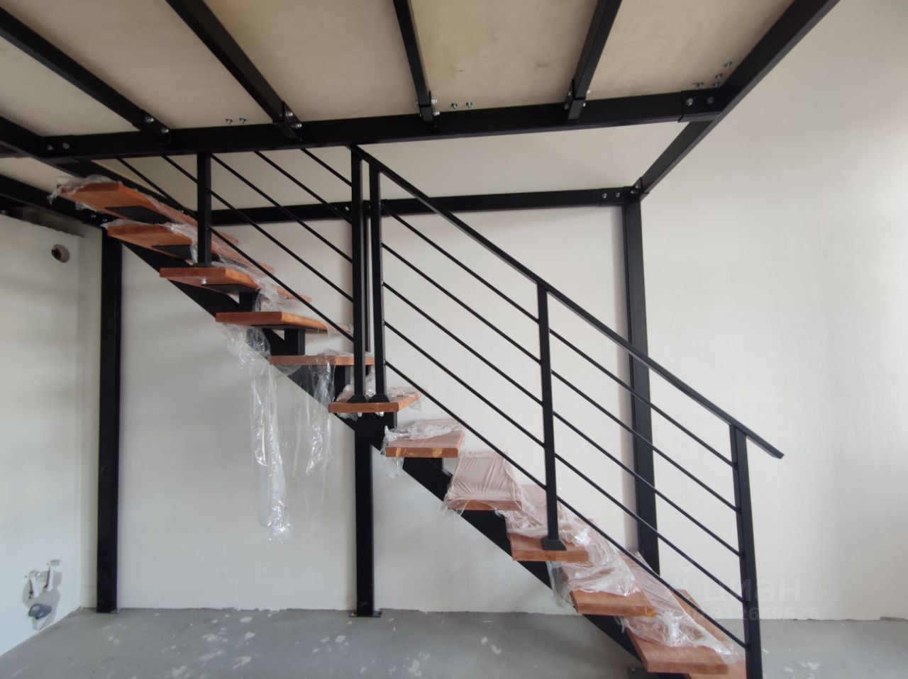 Антресоль разборная, но каркас, включая лестничный марш, уже смонтированы. Высота второго уровня без отделки 2,3 м., после проведения отделочных работ останется примерно 2 м, что вполне комфортно для размещения полноценной спальни.