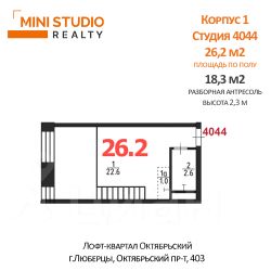 Площадь по полу 26,2 кв.м, площадь антресоли 18,3 кв.м, суммарная эксплуатируемая площадь 44,5 кв.м. Фактически евродвушка!