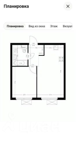 Кухня-гостиная 17,9 м² — удобно для зонирования и размещения полноценной кухни и зоны отдыха;