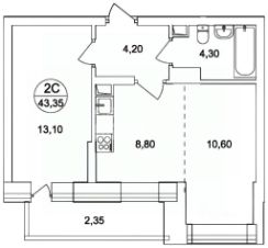 Двухкомнатная квартира, расположенная по адресу: ЖК Самолет, ул. Камова 7к2.
