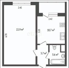 - Площадь квартиры по выписке из ЕГРН 40,9 м2 (с учётом лоджии 42,8 м2);