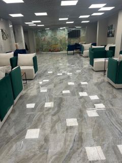 При входе в здание резиденты сразу попадают в стильное лобби со стойкой ресепшн и лаунж зонами. При входе предусмотрено место хранения детского транспорта и колясок. Светлые теплые цвета, используемые в интерьере, создают уютную домашнюю атмосферу. А эффектная стойка ресепшн и стильная мягкая зона подчеркивают современность и статусность проекта.