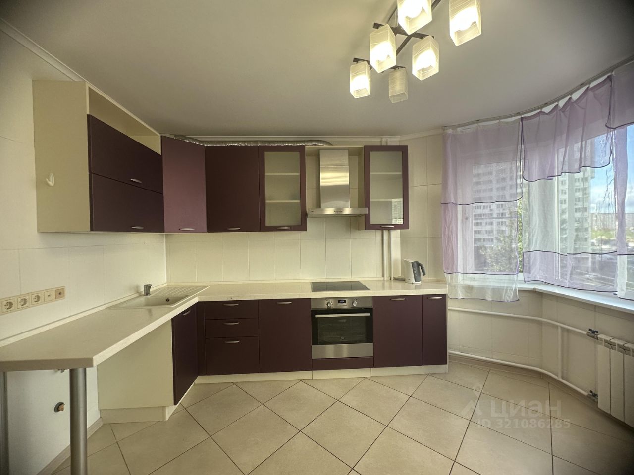 Квартира укомплектована встроенной кухней с бытовой техникой (Кухня от "Стильные кухни", техника Electrilux). Столешница камень.