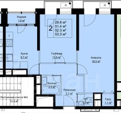 - Планировка удобная и легко адаптируется под формат 2+: две отдельные комнаты и кухня-гостиная. Такой вариант уже предусмотрен в дизайн-проекте.