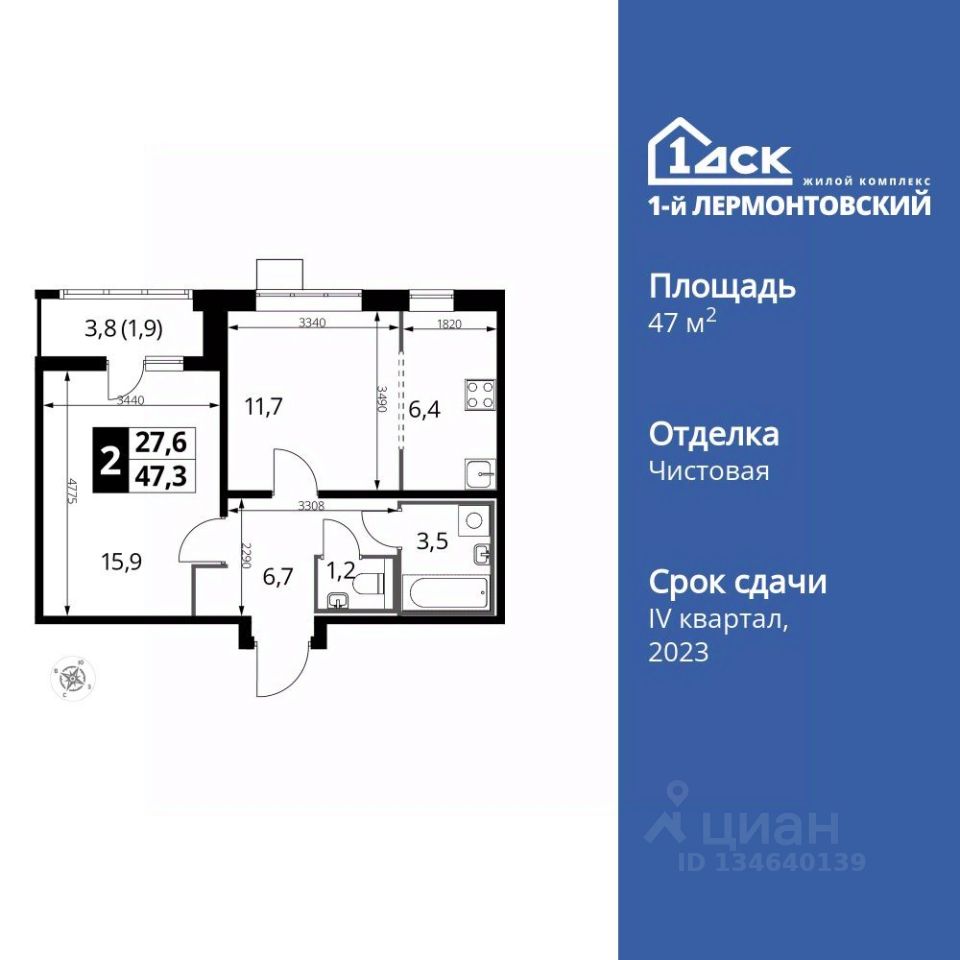 Продаётся 2-к квартира номер 233 общей площадью 47.4 кв.м. на 11-м этаже 24 этажного здания. Чистовая отделка. Цена с учётом скидки.