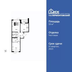 Продаётся 2-к квартира номер 451 общей площадью 59.7 кв.м. на 18-м этаже 22 этажного здания. Чистовая отделка. Цена с учётом скидки.