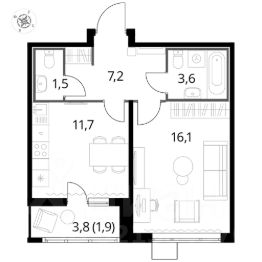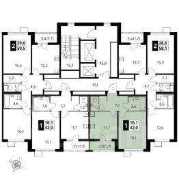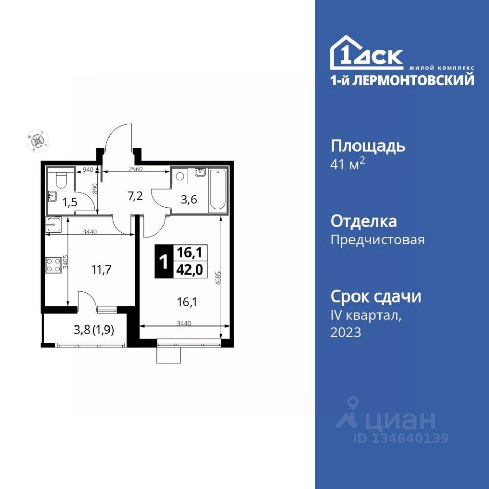 Продаётся 1-к квартира номер 513 общей площадью 41.9 кв.м. на 13-м этаже 22 этажного здания. Отделка Whitebox.