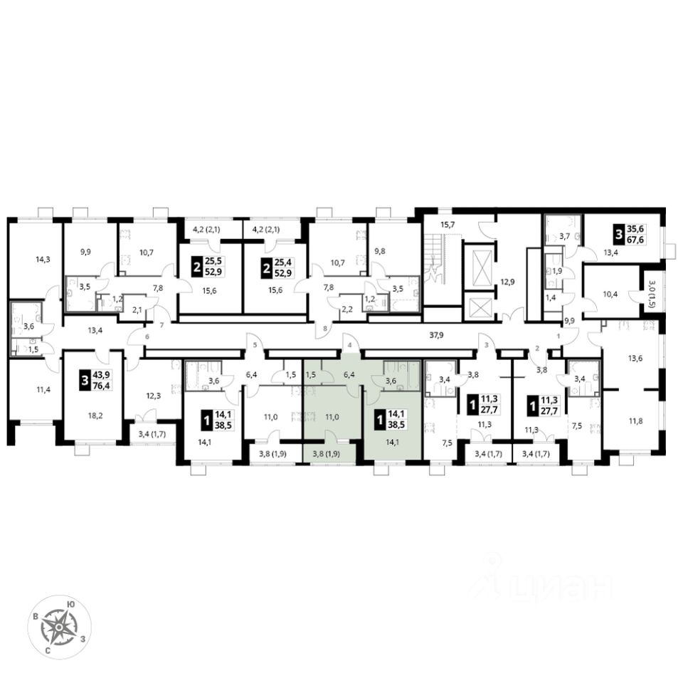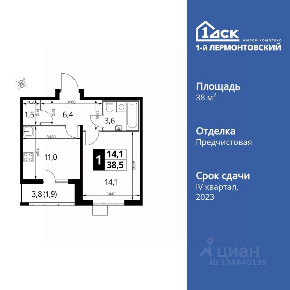 Продаётся 1-к квартира номер 667 общей площадью 38.3 кв.м. на 16-м этаже 24 этажного здания. Отделка Whitebox.