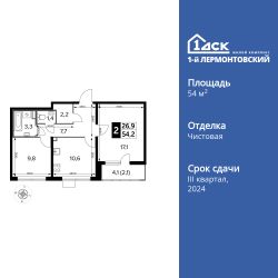 Продаётся 2-к квартира номер 235 общей площадью 54.2 кв.м. на 11-м этаже 24 этажного здания. Чистовая отделка. Цена с учётом скидки.