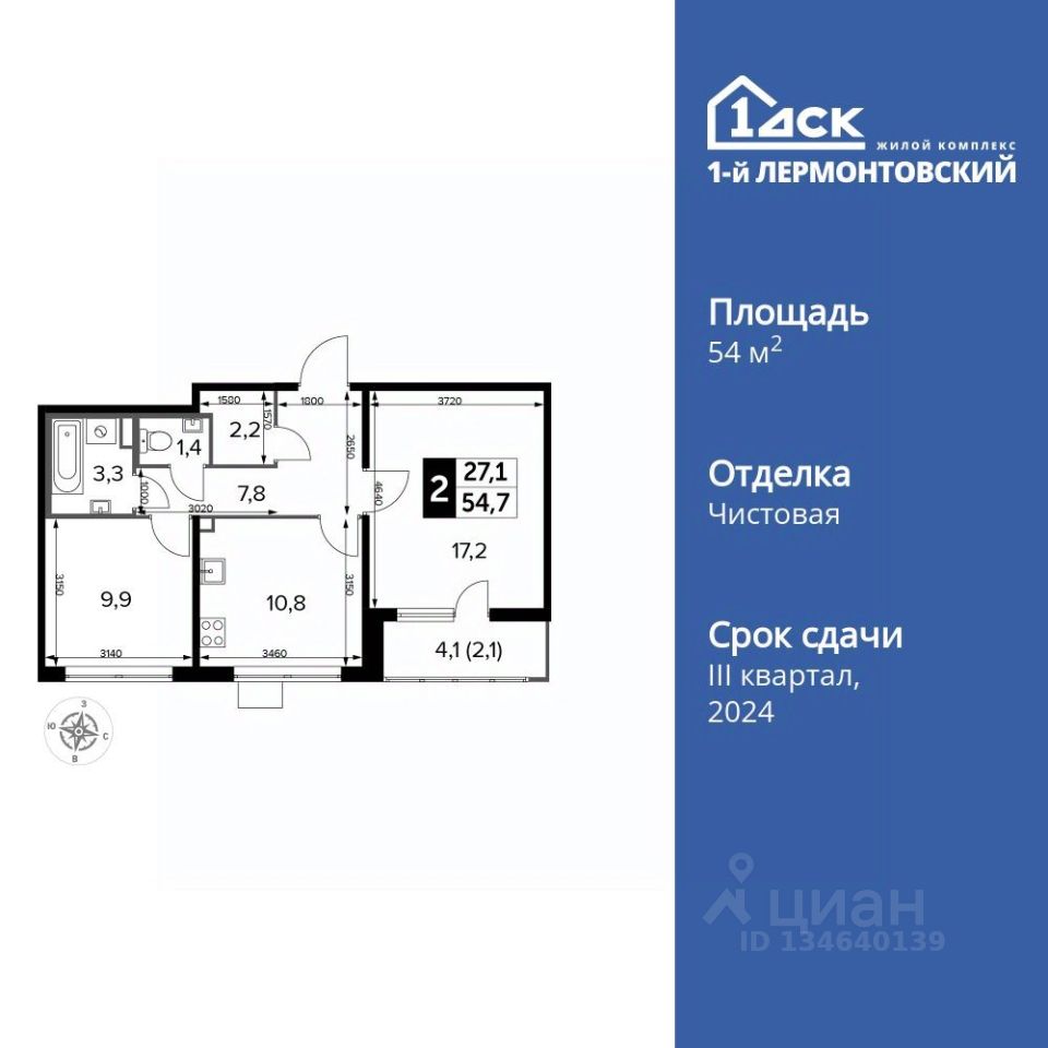 Продаётся 2-к квартира номер 291 общей площадью 54.6 кв.м. на 18-м этаже 24 этажного здания. Чистовая отделка. Цена с учётом скидки.
