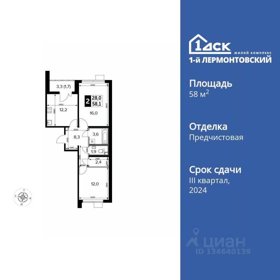 Продаётся 2-к квартира номер 606 общей площадью 58 кв.м. на 21-м этаже 24 этажного здания. Отделка Whitebox. Цена с учётом скидки.