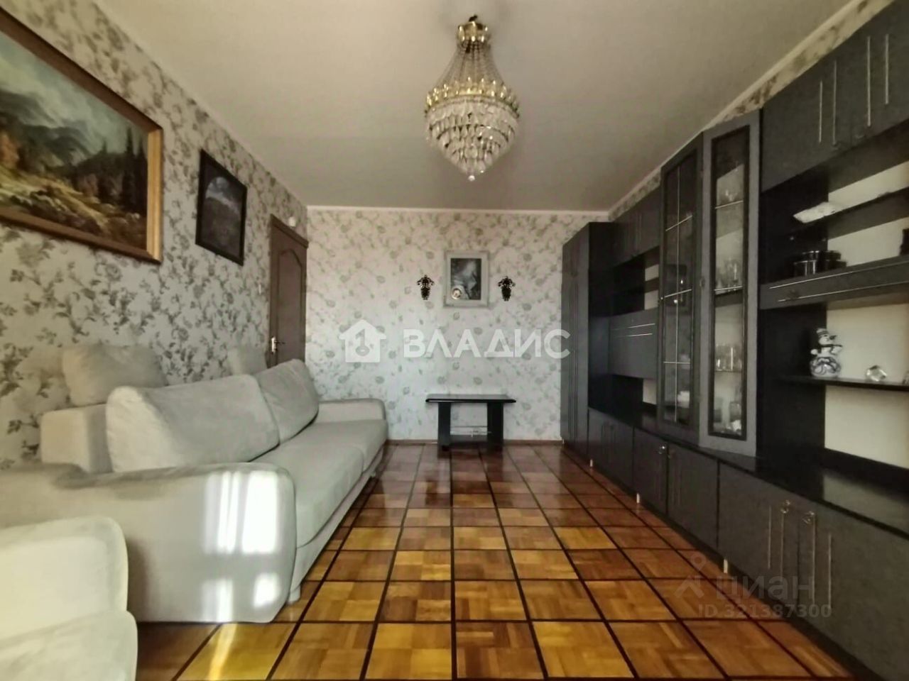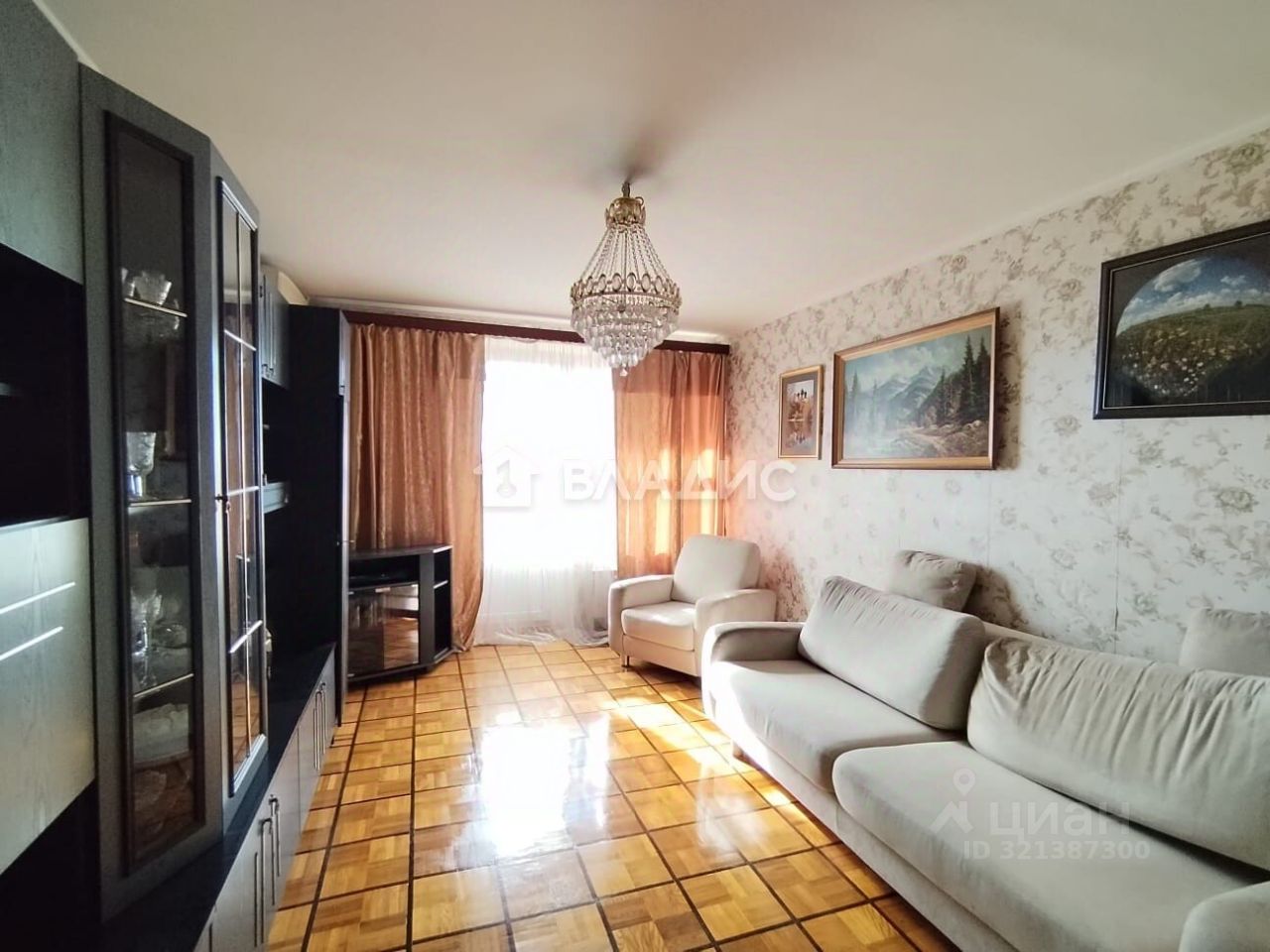 • Просторная гостиная с паркетом и лоджией: Большая комната (17 м2) с паркетом ручной работы и выходом на огромную лоджию.