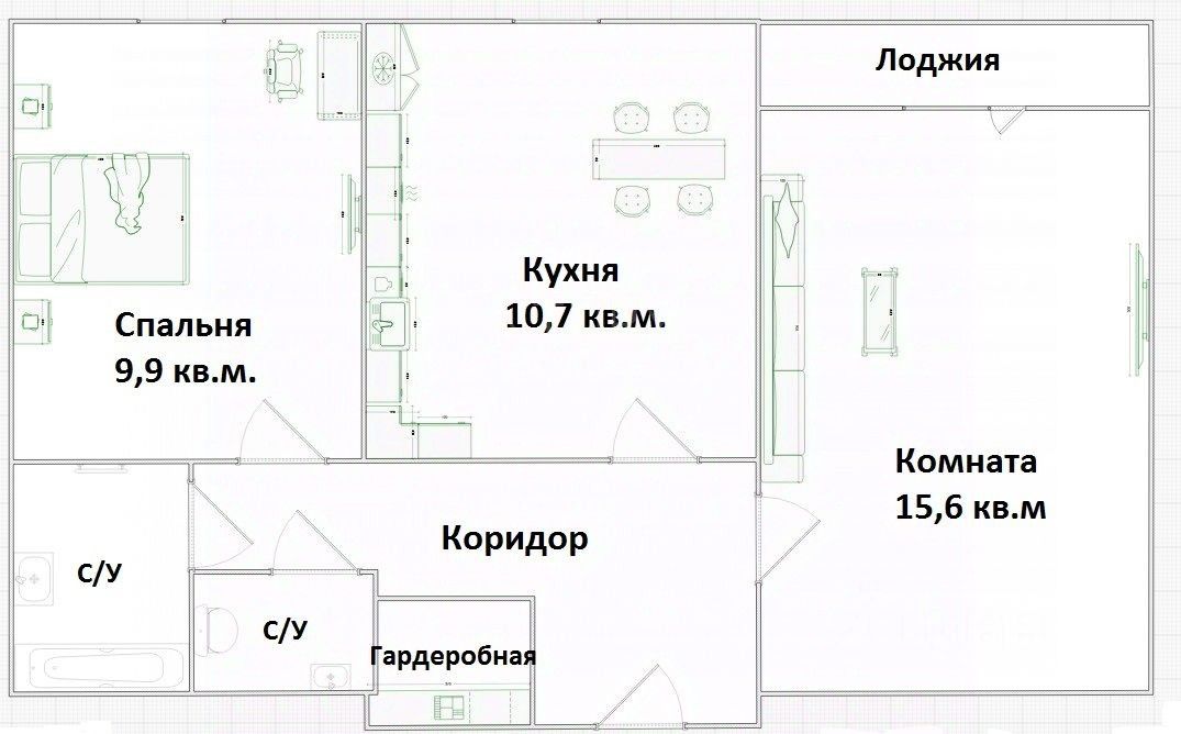 Также в квартире есть гардеробная, благодаря которой хранение вещей становится организованным, а места в комнатах гораздо больше.