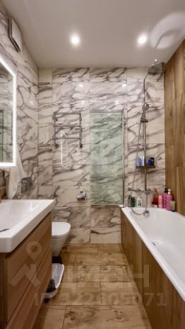Ремонт в ванной комнате выполнен с применением премиального итальянского керамогранита Atlas concorde, сантехники Roca. Ванная со стеклянной, выдвижной перегородкой.