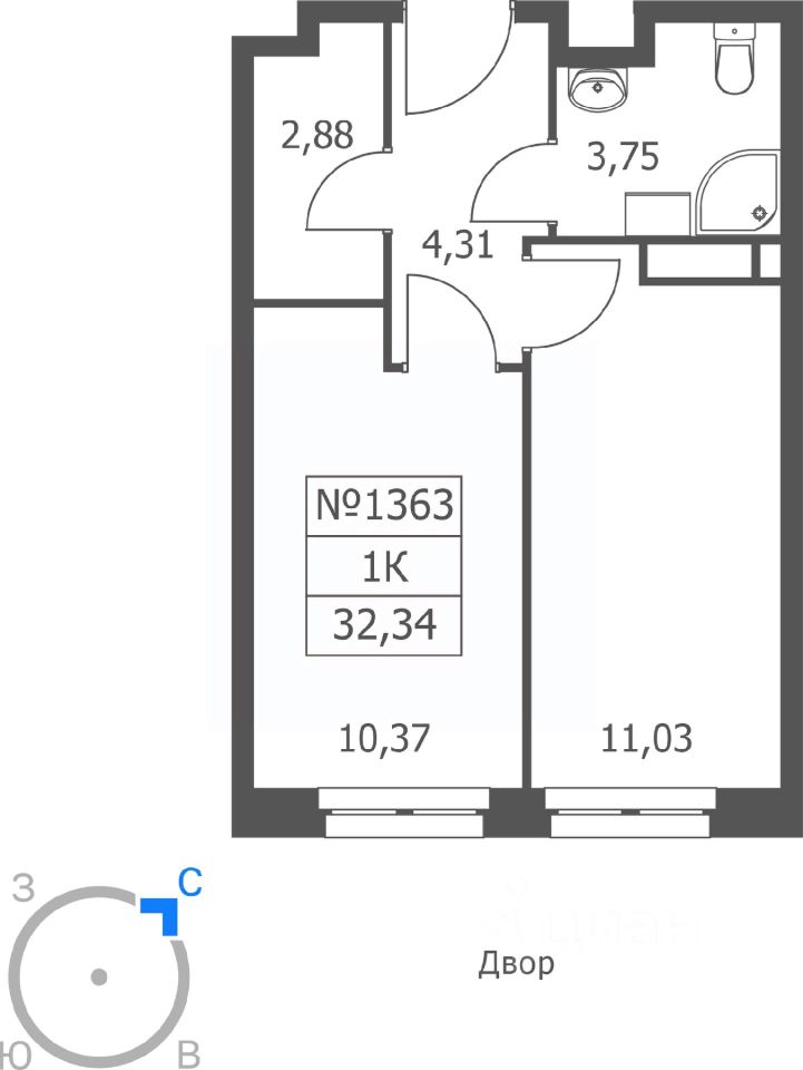 32,34 м²