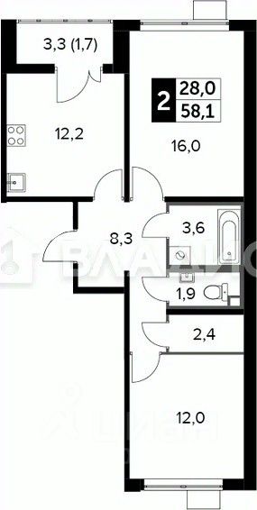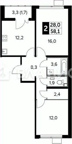 Срочно продаётся двухкомнатная квартира в новостройке ЖК "1-й Лермонтовский" в городе Люберцы, Московская область. Квартира расположена на 16 этаже 25-этажного монолитного дома, построенного в 2024 году. Общая площадь квартиры составляет 58,1 кв. м, из которых 28 кв. м — жилая площадь, 12,2 кв. м — кухня. Высота потолков — 2,84 м.
