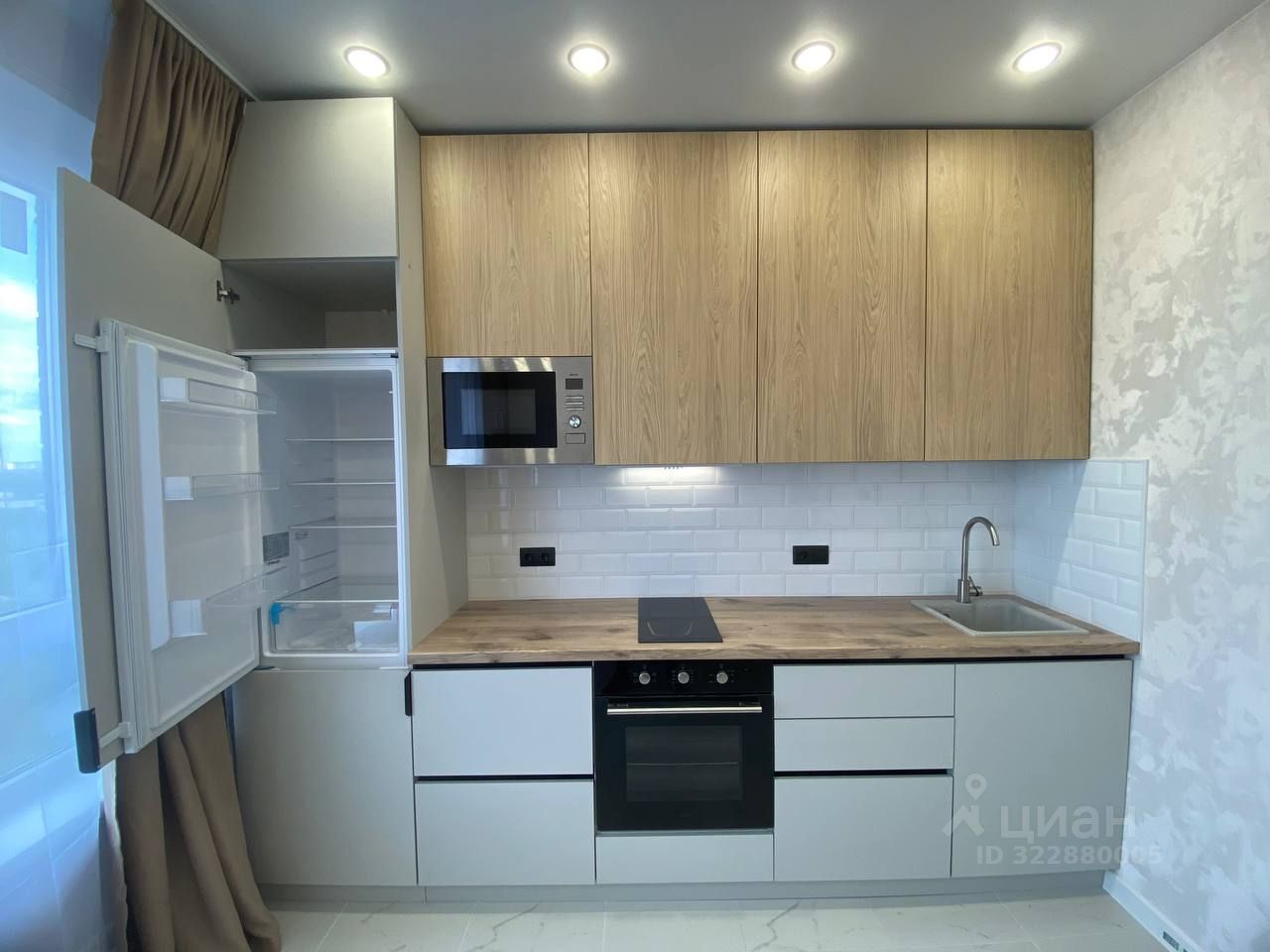 Все, что есть в квартире остается. Кухонный гарнитур сделан под заказ со встроенной бытовой техникой: варочная поверхность, холодильник, вытяжка, микроволновка, духовой шкаФ. Тумба под телевизор, в комнате шкаф изготовлен под заказ, вся мебель под потолок с максимальным количеством мест для хранения. Диван. Мебель и техника новые, техника на гарантии.