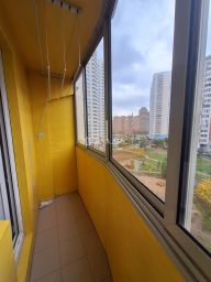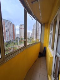 Большая комната с выходом на застеклённую лоджию, просторная кухня с откатной дверью, совмещенный санузел с ванной и стиральной машиной, много мест хранения в комнате, на кухне, в коридоре и на лоджии.