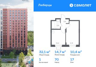 Строим кварталы для жизни с заботой о будущем. Предлагаются 1-комнатные апартаменты комфорт-класса 32,1 кв.м в корпусе 70 на 17 этаже, в "Люберцы"