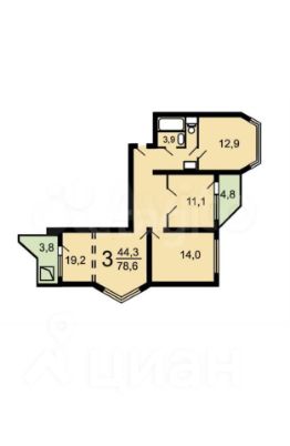 Квартира интересной планировки, с эркерными окнами. Три изолированные комнаты. Большая кухня 13 м2 с эркерным окном. Две лоджии. Санузел раздельный. Квартира готова к ремонту.