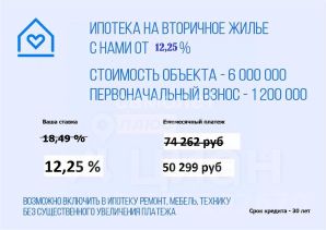 Арт. 123063056 ЭКСКЛЮЗИВНОЕ ПРЕДЛОЖЕНИЕ ОТ НАС И БАНКА ПАРТНЕРА НА ПОЛУЧЕНИЕ ИПОТЕЧНОЙ СТАВКИ от 12.25%!