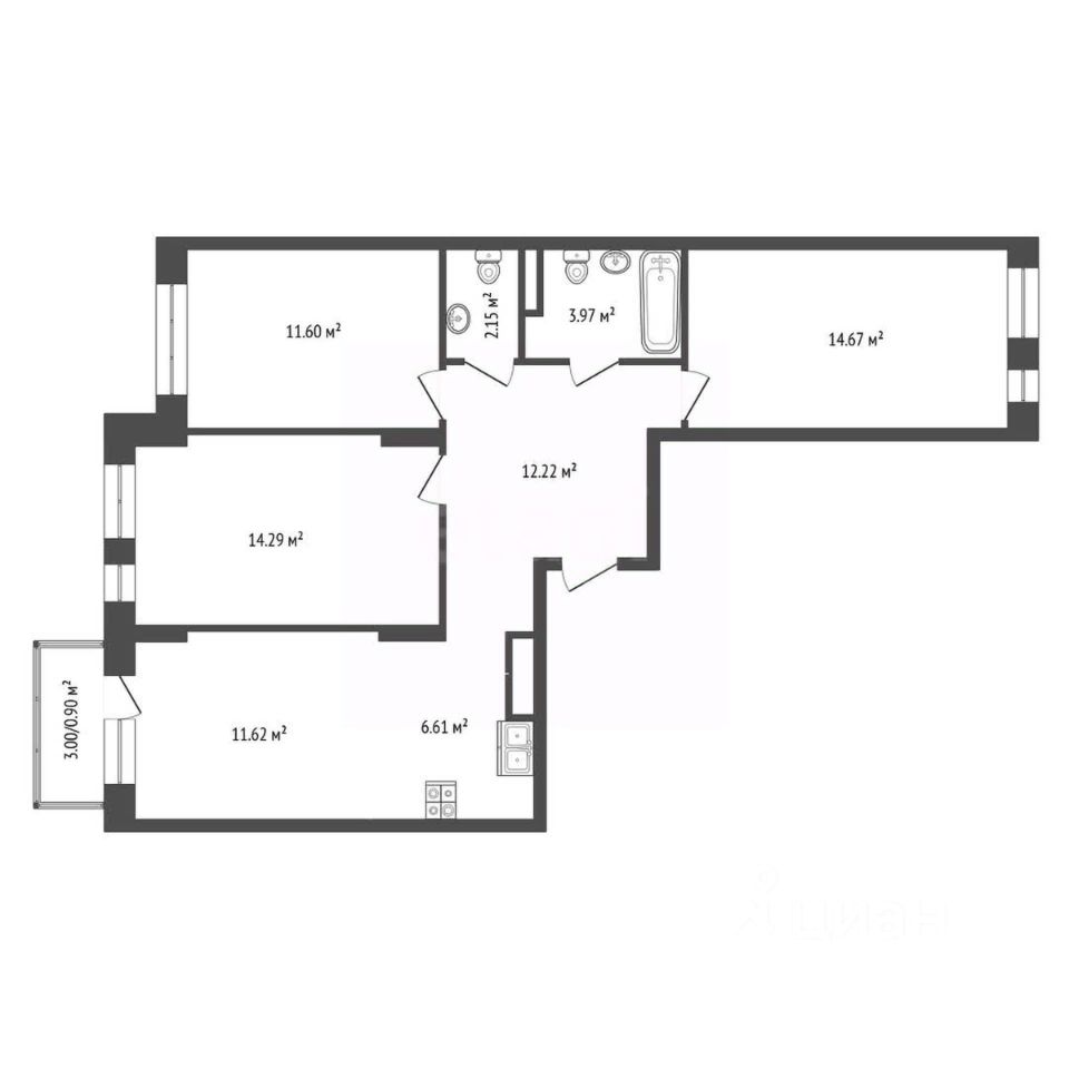 Просторная кухня (18,2 м²): Настоящий рай для кулинаров! Здесь хватит места для воплощения любых гастрономических идей и уютных семейных ужинов.Три изолированные комнаты: Каждая комната предлагает уединение и комфорт для всех членов семьи.Два санузла: Забудьте о "утренних очередях"! Два полноценных санузла — это неоспоримое преимущество для большой семьи.Балкон с видом на двор: Идеальное место для чашечки кофе утром или вечернего отдыха с книгой, наблюдая за детскими играми во дворе.