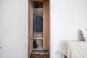 Размер комнаты и наличие двух окон придают пространству ощущение света и воздуха, а также позволяют реализовать разные сценарии зонирования. Компактная обустроенная кухня вмещает все необходимое. Санузел с современной мебелью и сантехникой. Для удобства хранения не демонтировали антресоли и кладовку.