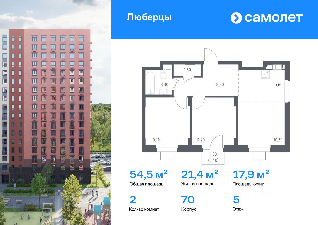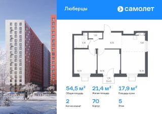 Строим кварталы для жизни с заботой о будущем. Предлагаются 2-комнатные апартаменты комфорт-класса 54,5 кв.м в корпусе 70 на 5 этаже, в "Люберцы"