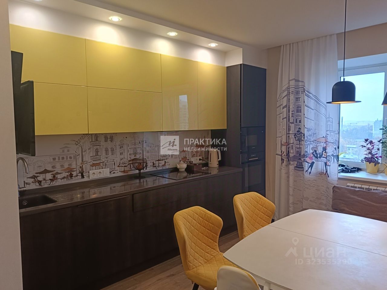 Общая площадь квартиры составляет 75 кв. м, из которых 39 кв. м — жилая площадь, что позволяет создать комфортное и уютное пространство для жизни. Площадь кухни — 13,2 кв. м. Высота потолков — 2,8 м. Квартира распашонка, окна выходят во двор и на улицу . Планировка продумана до мелочей, включая один раздельный и один совмещённый санузел. Из мебели, представленной на фотографиях, останется встроенная кухня.