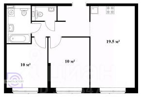 Комфортная планировка для семьи: Просторная кухня-гостиная 19.5 м² станет сердцем вашего дома. Две изолированные комнаты по 10 м² — родительская спальня и детская. Два санузла избавят от утренних очередей.