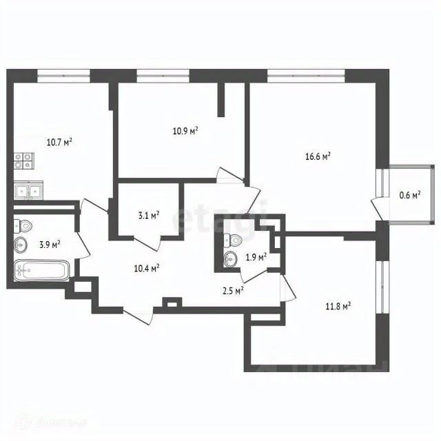 Продаётся просторная трёхкомнатная квартира в черновой отделке в новом современном ЖК "Облака 2.0".
