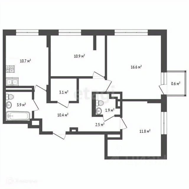 Квартира отличается удобной планировкой: три изолированные светлые комнаты, позволяющие создать комфортные зоны для отдыха, работы и личного пространства. Предусмотрены два санузла, что особенно удобно для семьи, а также большая прихожая с возможностью организации вместительной гардеробной или системы хранения.