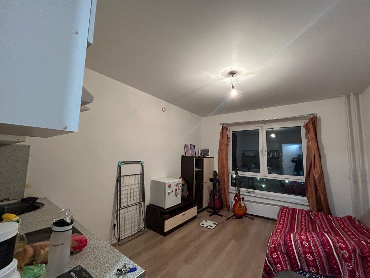 В квартире есть все необходимое для комфортной жизни. Совмещенный санузел выполнен в современном стиле, что позволяет экономить пространство и обеспечивает удобство использования. Планировка студии рационально организована, что делает ее очень светлой и уютной.
