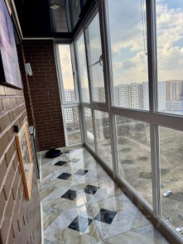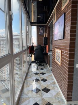 • Жилая большая лоджия утепленная, 6,6 кв м, соединенная с остальной площадью квартиры, окна от застройщика полностью менялись на трех камерные качественные немецкие дорогие окна Rehau. Есть сетки для окон, нижняя часть затонирована. Установлен теплый пол в лоджии. Выход на лоджию с кухни и комнаты.