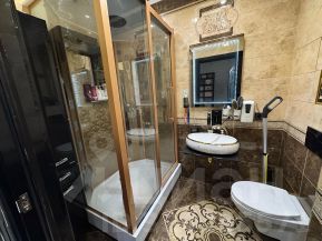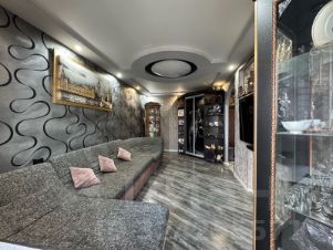 • Ремонт не косметический, квартира покупалась в черновом варианте, ремонт делался качественно для себя. Материалы качественные, дорогая плитка, ламинат и обои. Дорогая глянцевая дверь в сан узел.