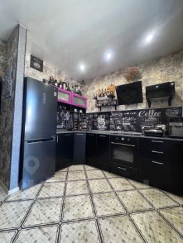 • В комнате двухуровневые матовые потолки, в остальных комещентях глянцевые натяжные, черный/белый/коричневый.