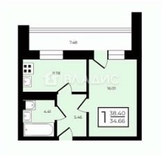 - Общая площадь: 36,1 кв. м.