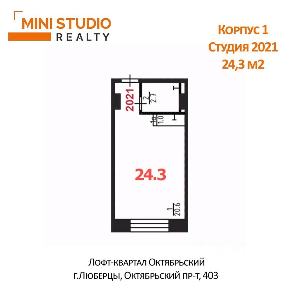 Продается студия 24,3 кв.м в подмосковном городе Люберцы. Собственная огороженная охраняемая территория с парковкой