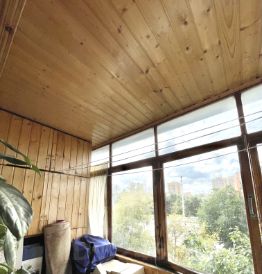 - Застеклённый балкон, отделан вагонкой.