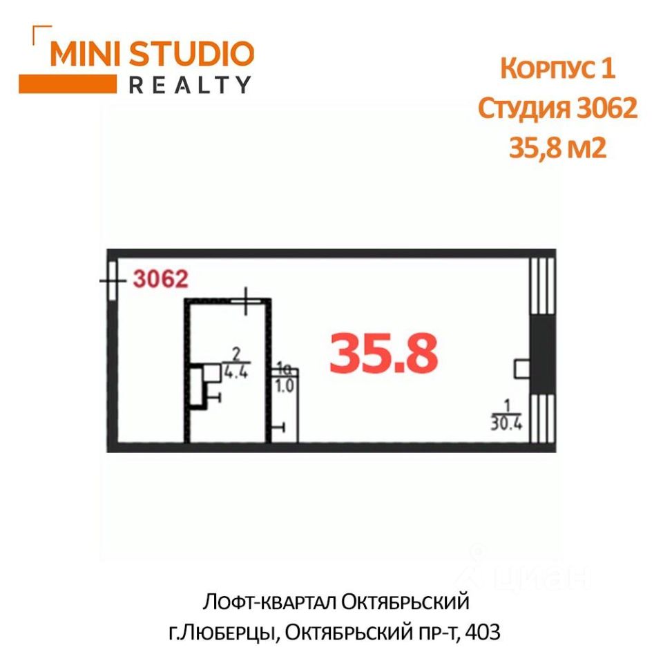 Продается студия готовая для проживания с полной отделкой 35,8 кв.м в подмосковном городе Люберцы. Из плюсов: большая прихожая и сан.узел с ванной.