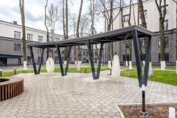 В кирпичном здании после полной реновации воссоздана атмосфера старинной усадьбы. На огороженной территории находится красивый парк с высокими вечнозелеными деревьями. Здесь оборудованы зоны отдыха и детская площадка. Также есть парковка, а внутри здания предусмотрено место для хранения колясок и детского транспорта.