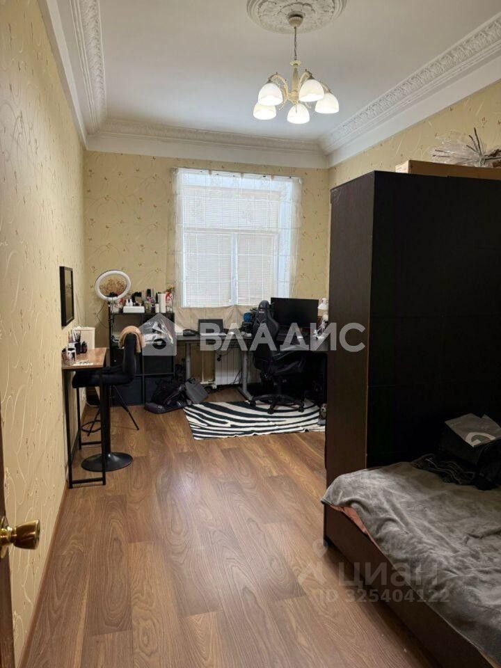 Общая площадь составляет 70,2 кв. м, высота потолков — 3,2 м. В квартире три изолированные комнаты, два балкона, окна выходят на улицу и во двор.