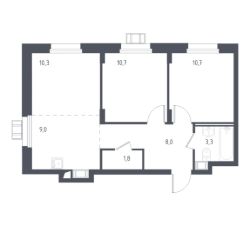 54,3 м²