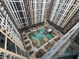 Окна выходят во двор . Закрытый двор от машин. Детская площадка . Много различных прогулочных зон .