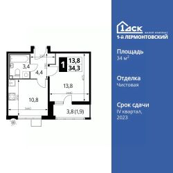 Продаётся 1-к квартира номер 442 общей площадью 34.2 кв.м. на 16-м этаже 22 этажного здания. Чистовая отделка. Цена с учётом скидки.