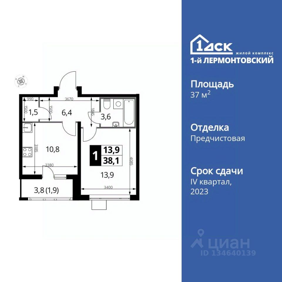 Продаётся 1-к квартира номер 749 общей площадью 37.9 кв.м. на 5-м этаже 24 этажного здания. Отделка Whitebox. Цена с учётом скидки.