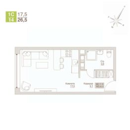 Продается уютный апартамент-студия общей площадью 26,5 м² с красивым видом на 9-м этаже 12-ти этажного строящегося дома АПАРТ-комплекса "ВЛЮБЕРЦЫ".